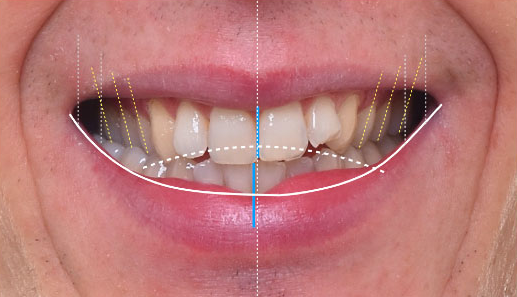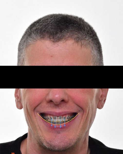 A 38-year-old male patient sought orthodontic treatment with both functional and esthetic concerns. His main complaints included the appearance of an inverted smile arc, reduced incisor display, and a general lack of harmony in his smile.