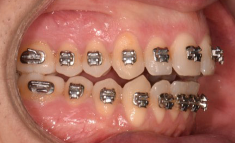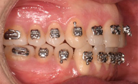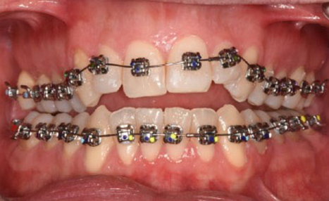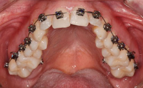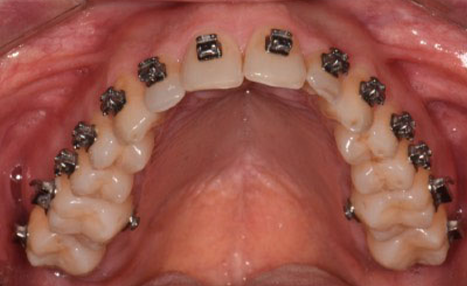 The initial alignment was performed with light CuNiTi archwires, promoting gradual expansion and alignment while avoiding heavy forces. Progressively, the treatment advanced to the final 0.018 x 0.0275 stainless steel archwires, ensuring full torque expression and establishing control over the occlusal plane.