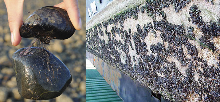 Figure 2. Exemplary marine mussel attachment (rocks and vessels).